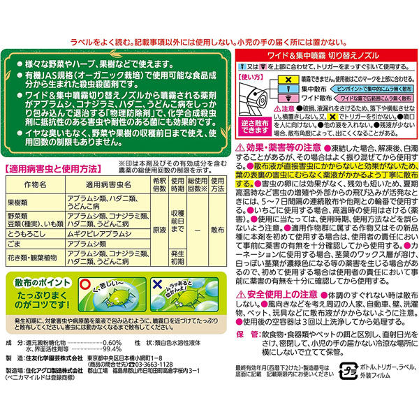 有効成分が害虫やウドンコ病を包み込み退治します。