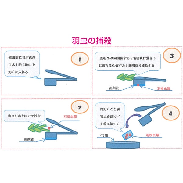 羽虫は2~3回フタを開閉させカップに落とし捕殺。