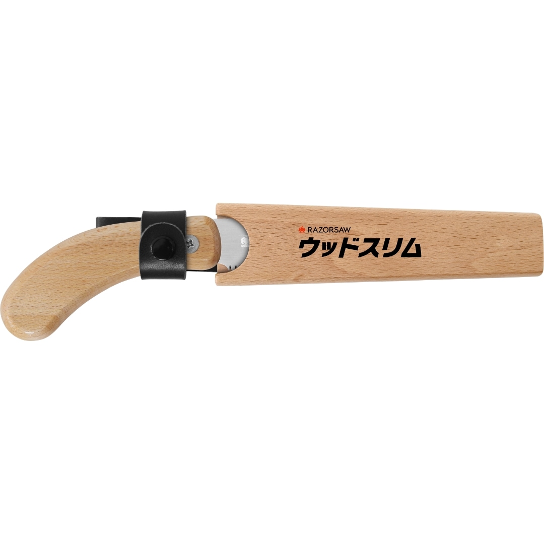 折りたたみ式ではないため、力がしっかり伝わり、太い枝も安定してカット可能。専用の木製サヤ付きで安全に保管できます。
