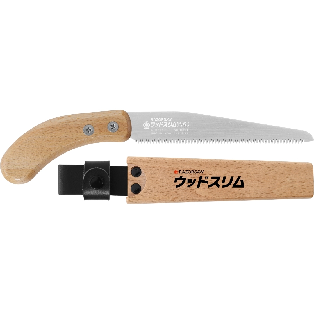 150mmのコンパクトな刃長、細身のグリップ、木製サヤが特徴。ホームセンター商品と一線を画すデザインです。
