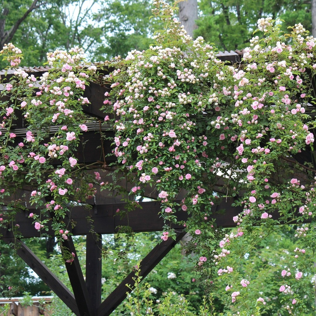 枝にはトゲが無く、細くしなやかで自由に誘引ができ、とても扱いやすい。