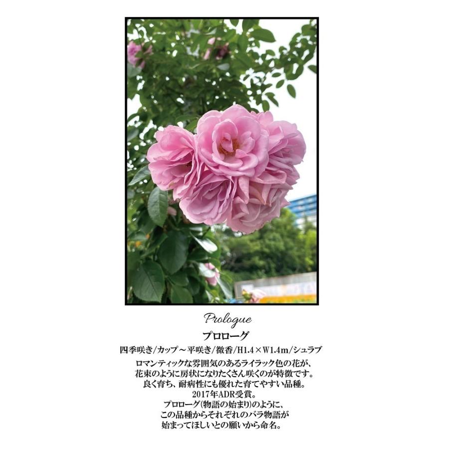 2017年ADR受賞。プロローグ(物語の始まり)のようにこの品種からそれぞれのバラの物語が始まってほしいとの願いから命名。
