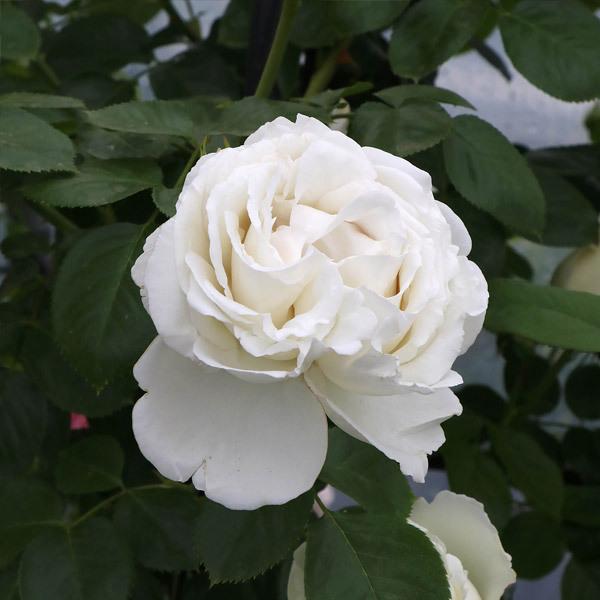 樹形は半横張り性のシュラブで、返り咲き性が強く伸びた枝先にほぼ花を付ける。