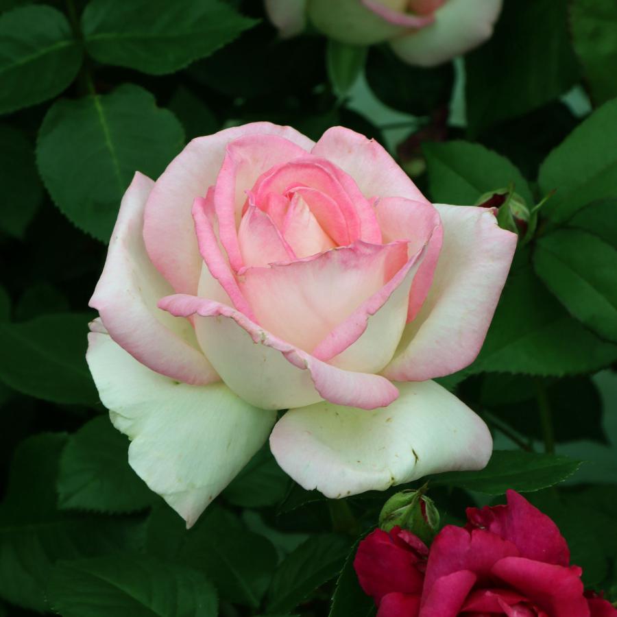 | 花期 | 四季咲き | 花色 | 白地に桃色の覆輪 | ||
