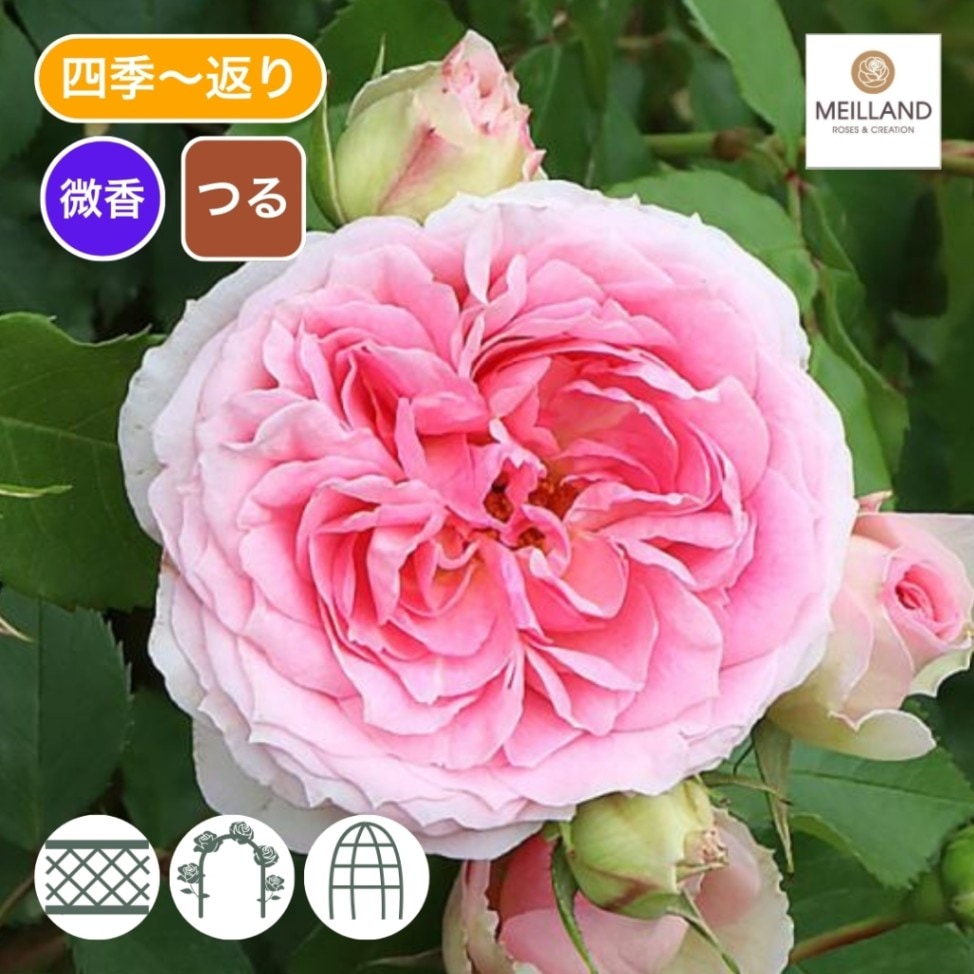 バラ苗 図鑑 ロゼ ピエール ドゥ ロンサール Rosé Pierre de Ronsard 国産ノイバラ台木使用