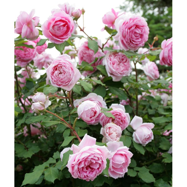 3~5輪の深い球状のカップ咲きでダマスク香を含む濃厚な香り。ややうつむいて咲く。