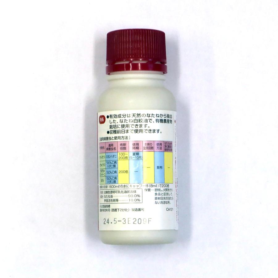 有効成分は天然のなたねから抽出した「なたね白絞油」で、日本農林規格が定める有機農産物栽培にも使用できる安心性の高い薬です。