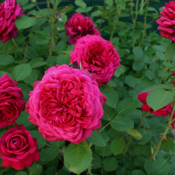 大小のトゲが多い枝は赤バラ系の中では珍しく充実し寿命も長くしっかりとした木立になる。