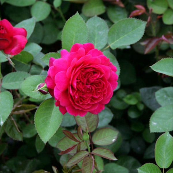 黒赤色だが赤色が強く、3輪程の房で咲きさわやかダマスク・モダン系の香りがある。
