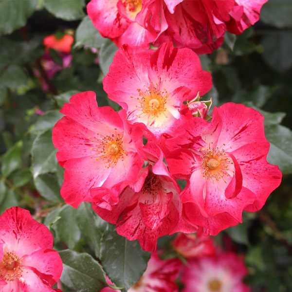 数輪の房咲きで花もちがよく花芯部以外は退色が少ない。