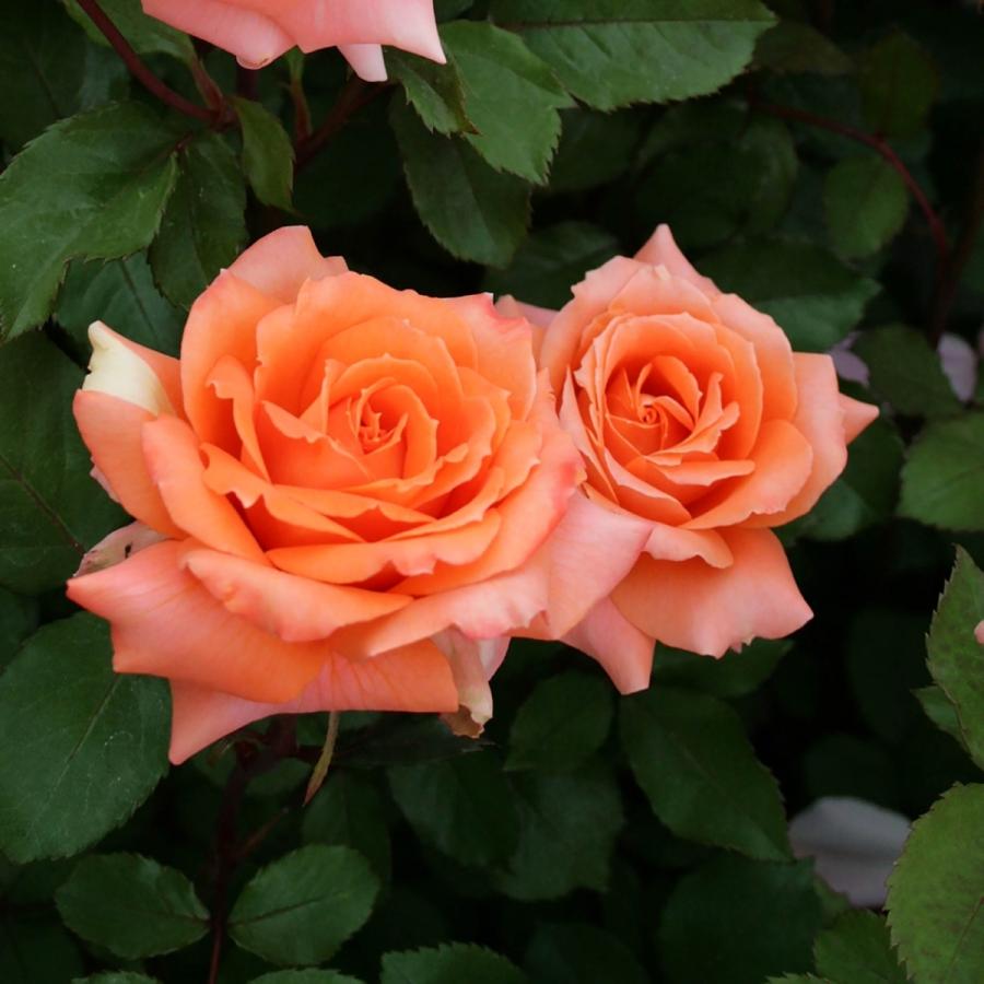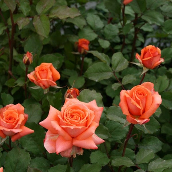 濃いオレンジ色の花はやや銅色がのり花首は細いが上を向き繊細なイメージ。