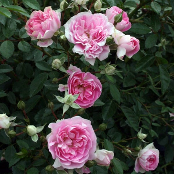 桃色の花は小輪のポンポン咲きで数輪の房で咲く。