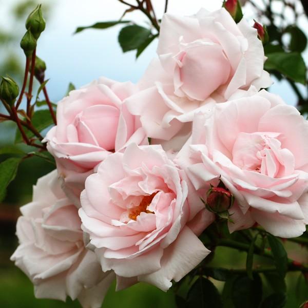 淡桃色の半剣弁咲きで数輪の房で咲き花つきがとても良い。
