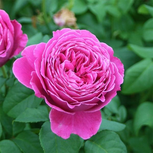 ローズ色がのった赤紫色花は形のよいカップ咲きで12cm程の大輪。