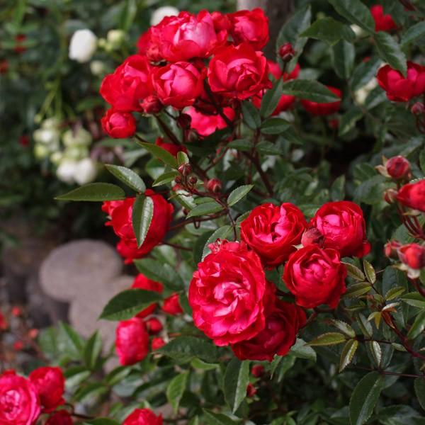 | 花期 | 四季咲き | 花色 | ローズ色が少しのった緋赤色 | ||