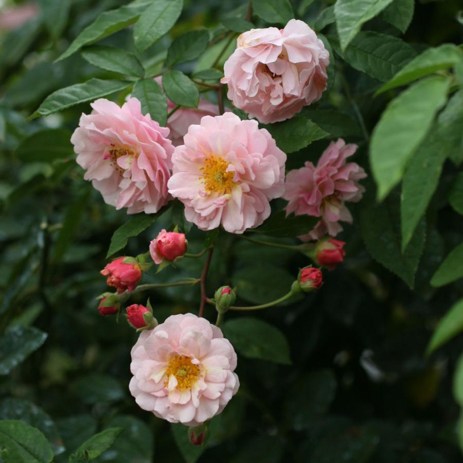 やや赤みののったアプリコット色の花は5輪位の房咲き性。
