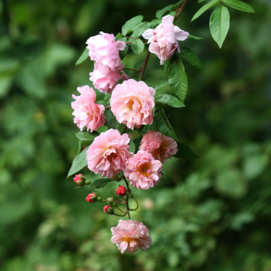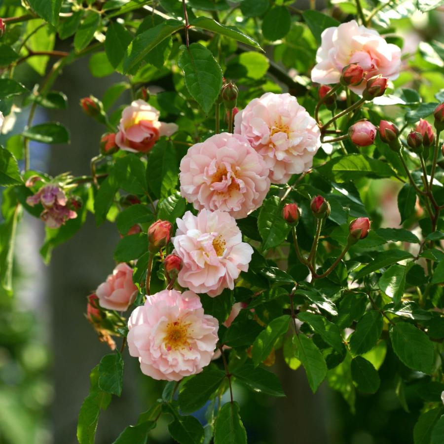 自然樹形でも楽しめるが広いスペースが必要となるのでつるバラとして扱う。
