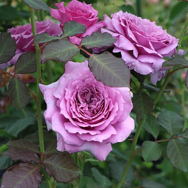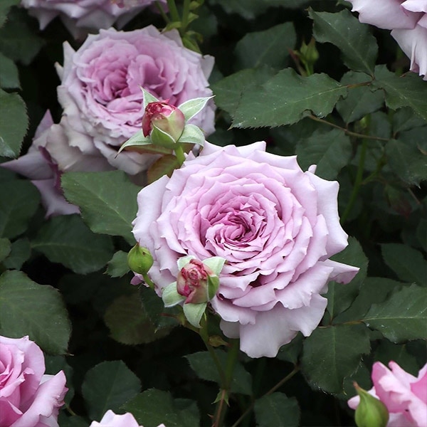 花径10cm位の中大輪で数輪の房咲き、ブルー・ローズ香の強香がある。