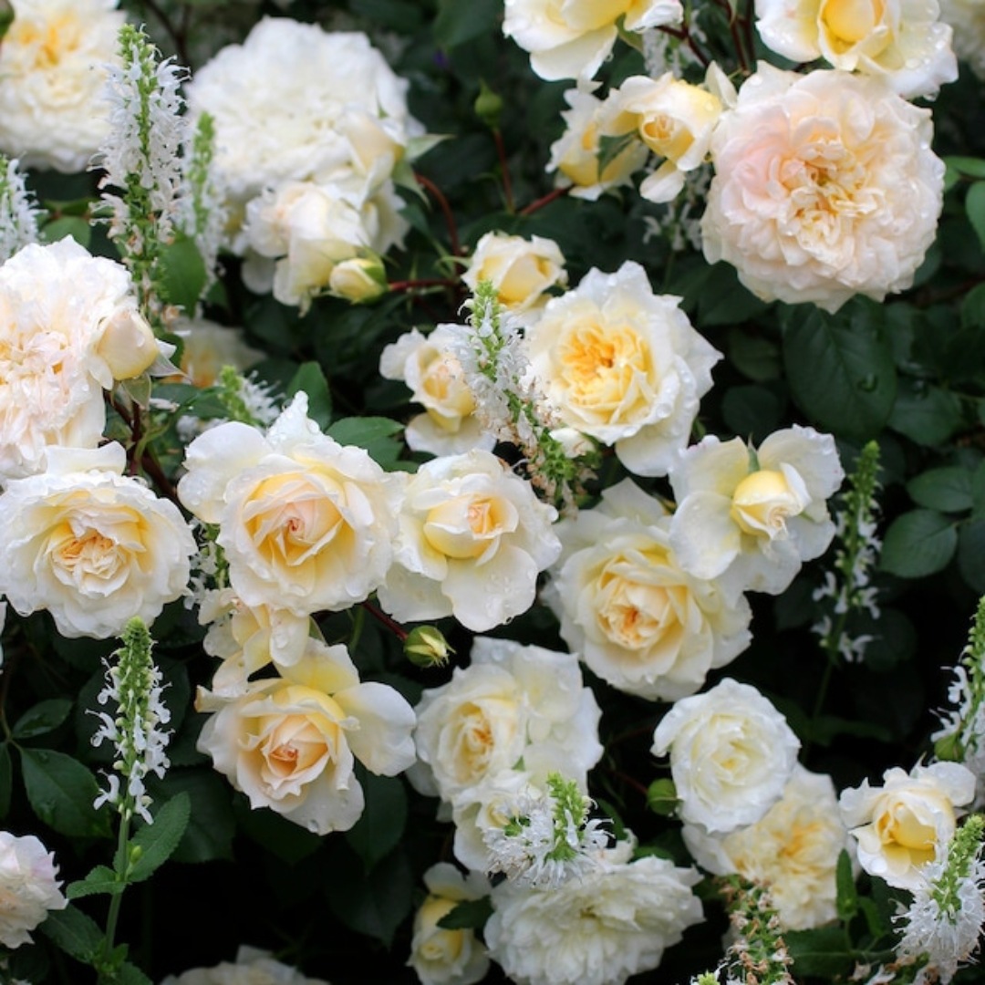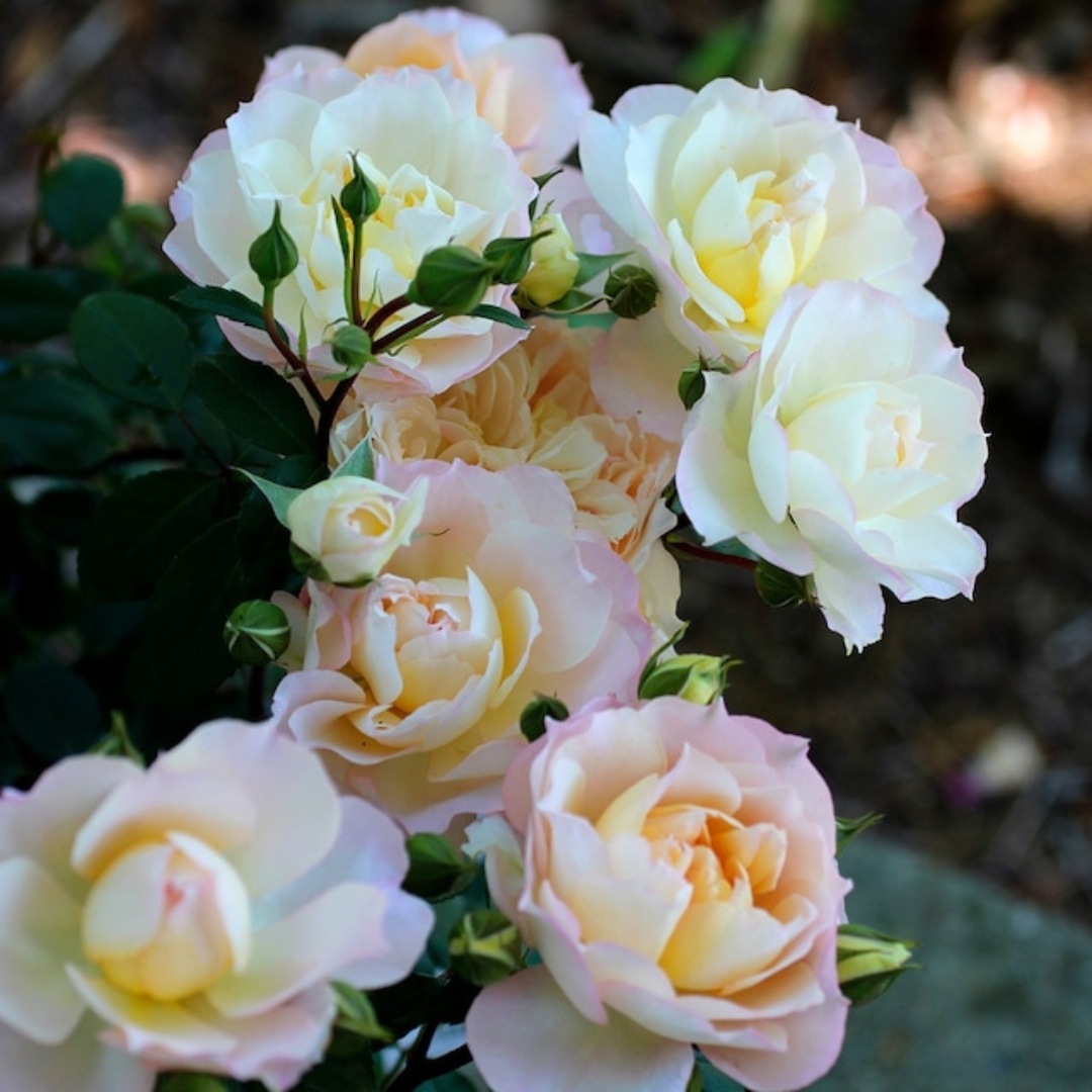 ローズティーの繊細な香りのある花は、黄色からクリーム、白へと色変わりし、 魅力が多いバラ。