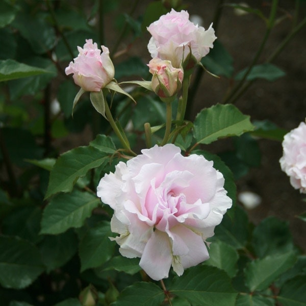 1~3輪位の房咲きで弁質よく、雨にも強く花もちもよい。