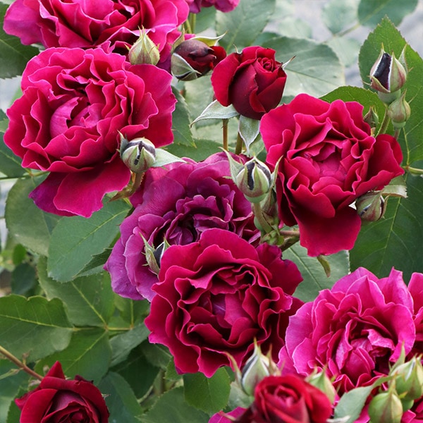 数輪の房で咲きモダン・ダマスク香の強香、弁質よく花もちもよい。