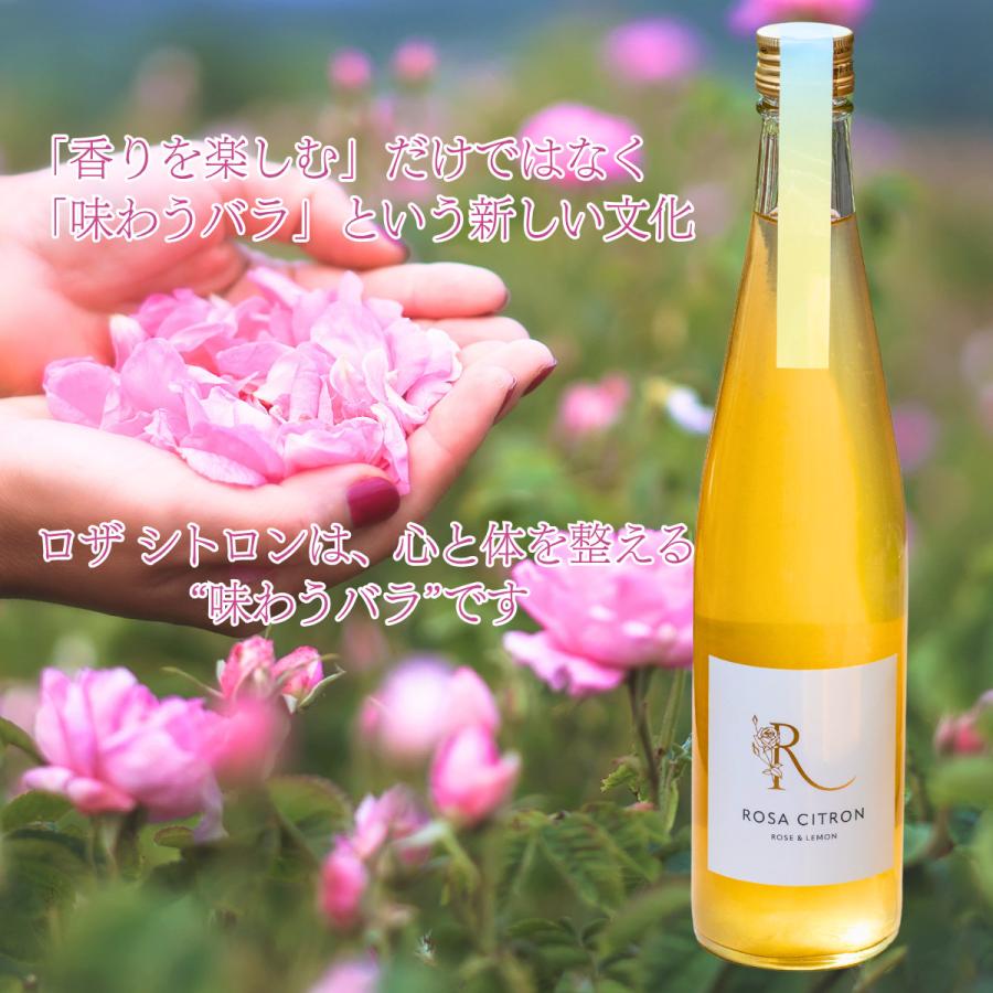 ロザ シトロンは、ブルガリア産ダマスクローズを使用した有機JAS認証ローズウォーターとシチリア産有機レモン果汁をブレンドし、北海道産の甜菜糖蜜を加えて作られた濃縮ナチュラルドリンクです。